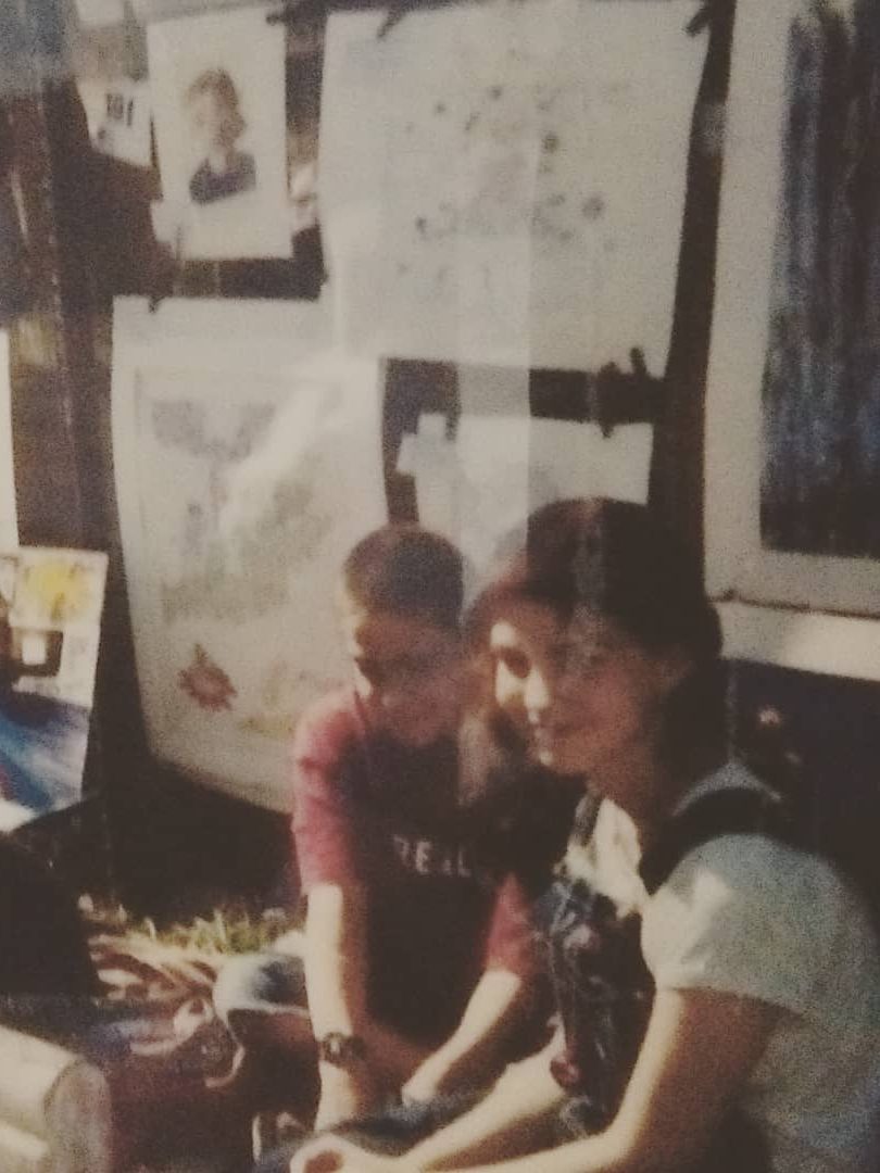 We met in 1995, our first year at Governor’s School for the Arts, in Norfolk, VA. He was a 9th grader at Franklin High School (Franklin, VA) & I was in 10th grade at Great Bridge High School (Chesapeake, VA). Our friendship is the greatest proof of miracles because we found each other exactly 54.8 miles apart in a time before cell phones, Google maps, or GPS – a time without the internet, if you can imagine. We became fast friends – and actually this picture (below) was taken a few weeks after we met. We instantly clicked. He was hilarious. We decided to participate in the Virginia Beach Neptune Festival Youth Art Exhibition together but neither of us could drive yet – his parents transported him 1.5 hours away to my house the night before. He slept on the couch and my mom drove us 45 min to VA Beach Oceanfront early morning to register to participate in the youth exhibit. We didn’t win but we were both so excited to be there..to have the experience. We look like babies. I thought it was the coolest day of my life thus far. I made my mom take a Polaroid of us.